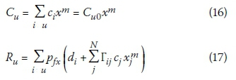 With increasing x, Cuincreases linearly, while Rudecreases asymptotically to zero as the probability of failure pjxdecreases.