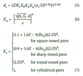 Finally, it may be interesting to note that, unlike the other models, the equation for bridge pier scour by Ali and Karim (2002) was developed from a numerical model for the associated complex flow field.