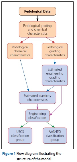 Based on the findings of this research project, a mathematical model was developed to determine the engineering properties of a soil from the quantitative and qualitative pedological data. The inputs to this model are the physical and chemical properties of the soils of the various horizons as established for pedological purposes and supplied, for example, as part of the modal profile data recorded in the Land Type memoirs or stored in the databank established by the Institute for Soil, Climate and Water (LTSS 2021). The engineering soil properties (output by the model) include grading and plasticity properties, and the USCS and AASHTO classification groups, which may be used in the initial planning of a wide range of soil engineering-related projects such as transportation route alignment and township development. The model is intended to supplement information at the reconnaissance phase of proposed projects by assisting in identifying relatively favourable or unfavourable soils.