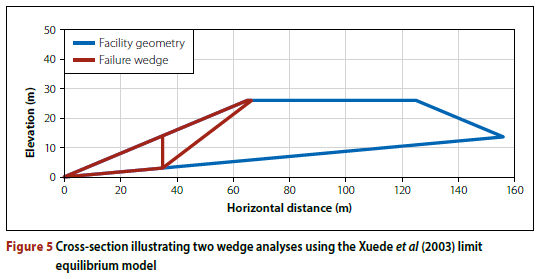 The Expert Panel performed limit equilibrium analyses for drained conditions and concluded that the overall factor of safety was high enough to preclude drained failure, even if the phreatic surface was coincident with the bench elevation. This conclusion was independently checked by the author using the same parameters adopted by the Expert Panel and the factor of safety was found to be greater than 1.6 for failure of the full slope (see Figure 4 on page 32). Overall failure of the facility would therefore not have been expected to be initiated by a conventional drained mechanism.