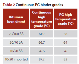 Keywords: PG grade, bitumen, binder performance, fatigue, rutting, ageing ratio, continuous grading temperature