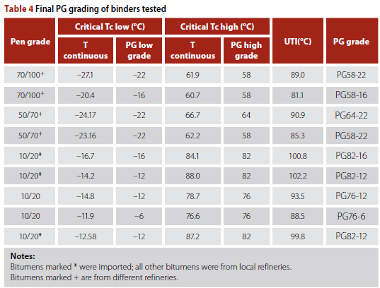 Table 4 shows that all bitumen reported complies with the UTI > 80°C requirement.