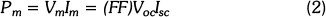 Pm = VmIm = (FF)VocIsc (2) where FF is the fill factor,