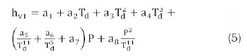 where vapour enthalpies hv1 and hv2 are given by following equations.