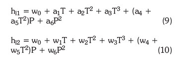 and hl1and hl2 are the enthalpies of saturated liquid ammonia and saturated liquid water component respectively, and are given by the following equations.
