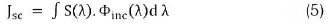The short circuit current density Jsc produced by a CTJ cell is more complex than that from a single-junction cell as the sub-cells are series-connected. For a single cell, the current density is defined in Equation 5 as: