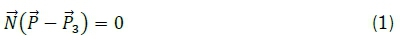 The interest is to find the intersection of a line and a plane of a flat mirror tile. A plane having points Ρ and P3on it with normal N is described by Equation 1.