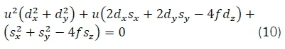 Inserting the components from Equation 7, the surface shape gives Equation 9 for u.