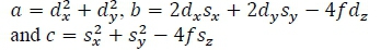• given a sun point, S and a direction of the ray, d, the second order equation for u is solved;