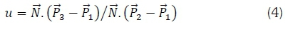 The line passing through the points P, P1, P2is expressed as Equation 2.