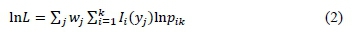 where xjis the row vector of observed values of the independent variables for the jth observation, and ßmis the coefficient vector for outcome m. The log pseudolikelihood is given in Equation 2.