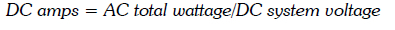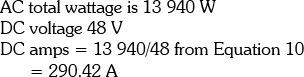DC amps = AC total wattage/DC system voltage (1) = 15 216/48 = 317 A
