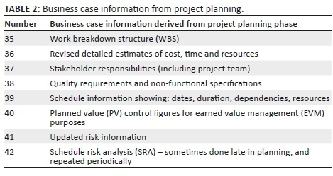 Information, from project planning, used in business case processes
