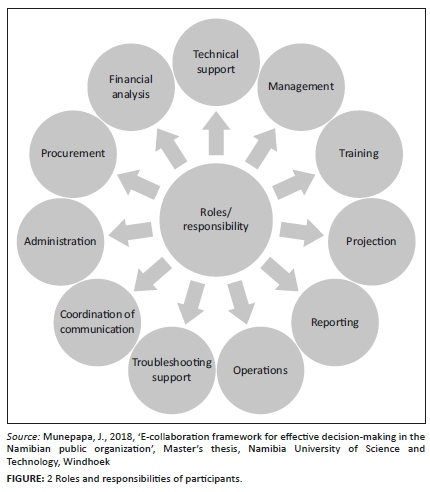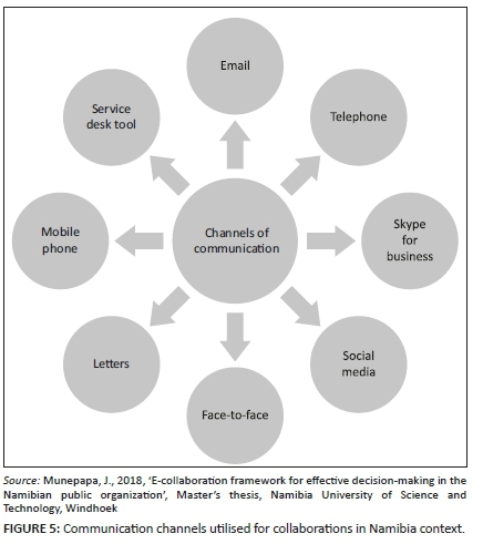 Namibia has some apparent organisational challenges that can hinder the application of Internet-based collaboration tools in the public sector (Wahl & Kitchel 2016). For example, information systems and other ICT technological applications such as Skype for Business and Microsoft SharePoint were introduced as innovation to encourage online collaboration, but they are currently not being used; traditional collaboration approaches persist, while decision-making processes remain unchanged. Even though the usage of ICTs enabled technologies for collaboration with diverse stakeholders, including service providers and subject specialists - be it within the organisation, external, service recipients or for exchanging ideas, skills, expertise, and to share information for effective decision-making - adoption and utilisation have remained unofficial (Scott & Thomas 2016).