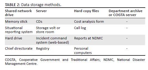 Table 1 shows some of the data collection tools the participants use. Incident report templates or incident assessment reports were the data collection method used the most, followed by e-mail inquiries. One participant said, 'we do not have a scientific research design and methodology; we just collect information informally or on ad hoc'. As observed in Table 1, most of the data collection methods are for disaster response purposes, and in support of what the participant stated, the PDMCs do not proactively collect data to inform their risk reduction and effective response activities.