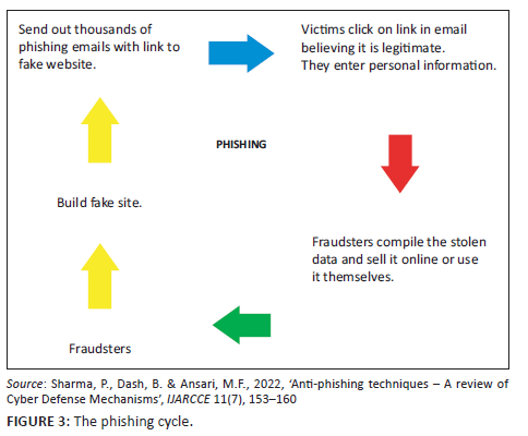 Online banking fraud refers to the unlawful use of a person's private information to make purchases or withdraw money from their bank account (Boutaher et al. 2020). Online banking fraud generally has the common deceptive characteristics of cybercrime perpetrated in a business relationship for personal gains. It is an act to intentionally deceive through false information, claim or the suppression of the truth (Crouhy, Galai & Wiener 2021). The literature reveals that the most common type of online fraud in the banking sector is phishing. Generally, phishing could be defined as a scalable act of deception whereby impersonation is used to obtain information from a victim (Arianna et al. 2022). Phishing is a form of social engineering in which a fraudster attempts to fraudulently retrieve legitimate users' confidential credentials by mimicking electronic communications or phone calls from a trustworthy or public organisation in an automated fashion (Alkhalil et al. 2021).