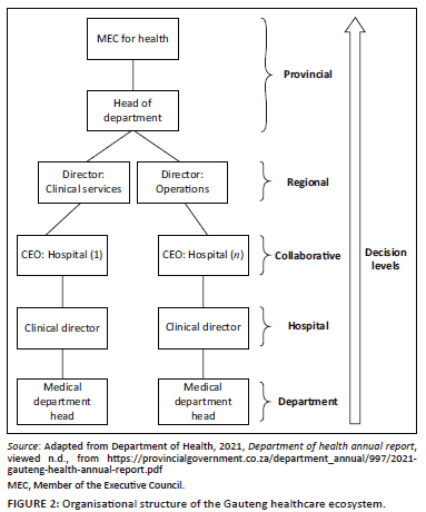 The level of risk in making decisions reduces, as data shifts to wisdom (Hussain et al. 2021). Minimising risk and uncertainty within the healthcare ecosystem can therefore lead to better decisions at the appropriate levels. Figure 2 is an illustration of the clinical and operational organisational structure of the healthcare ecosystem in Gauteng. The organisational structure also depicts decision making at various levels which can be supported with live hospital occupancy information.
