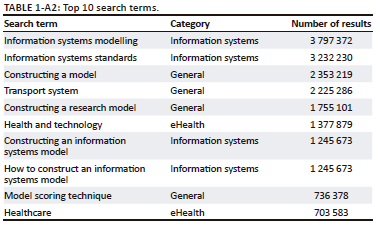 Elements of a systematic literature review, such as a systematic search strategy (Snyder 2019) and screening of existing literature (Moonsamy 2021), were implemented during this literature review. One of the aims of the literature review was to investigate and evaluate existing eHealth information systems design models. The ScienceDirect database which houses scientific and medical research journals (ScienceDirect 2023) was primarily used for the search of relevant material. Over 100 search terms related to eHealth and information systems models were used over a period of 6 months. Appendix 2 indicates the search terms which yielded the top 10 number of results. The search terms were categorised as follows: