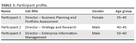 The interviews included practitioners from three separate roles. The use of individuals from different positions ensures that interviews capture various aspects of Big Data integration, from operational challenges to strategy to the decision-making process. Two interviews were conducted in person at the CoT offices in Pretoria using the researcher's personal recording device, while two were recorded using Microsoft Teams. Despite the fact that in-person interviews made it possible to better interpret non-verbal clues like body language and facial emotions, organising in-person interviews may pose logistical challenges, especially if participants are located in different geographic locations. Other participants can opt to join virtual interviews from the comfort of their own environment which contributes to a more relaxed atmosphere and potentially enhancing their comfort level in sharing information. Virtual interviews are vulnerable to technical issues, such as connectivity problems, audio or video disruptions, or platform-related challenges. These issues can disrupt the flow of the interview and affect the quality of communication. To protect their anonymity, the participants were coded as Participant 1, Participant 2 and Participant 3. A pilot test was conducted with one interviewee to allow the researchers to enhance the reliability and validity of the interview protocol, leading to more effective data collection during the actual interviews.