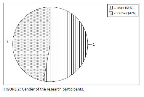 In terms of the gender of the respondents, this survey found that 53% of respondents were male and 47% were female (Figure 2). The difference in gender distribution was only 6%. The results are incongruent with the report by Statistics South Africa (Stats SA 2019) that asserted that the prevalence of disability in South Africa varies significantly between genders. In 2018, 6.4% of men had a disability, compared to 8.9% of women. This was also confirmed by Lee et al. (2022) who reported that disability incidence rates are greater for women than for men. The findings of this study suggest that women with disabilities face numerous challenges, including being denied access to education, neglected, and disproportionately affected by gender-based violence. Additionally, they are excluded from participating in economic activities, unlike their male counterparts.