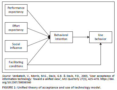 Venkatesh, V., Morris, M.G., Davis, G.B. & Davis, F.D., 2003, 'User acceptance of information technology: Toward a unified view', MIS Quarterly 27(3), 425-478. https://doi.org/10.2307/30036540 [ Links ]