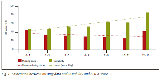 The appropriate referral pathway was significantly less likely to have been followed in patients with missing data, suggesting either knowledge or system problems being more common in these situations. Patients with missing data were significantly more likely to have central nervous system (CNS) dysfunction, which is likely due to lack of availability of computed tomography (CT) scanners in district and some regional hospitals. In general, patients with missing data tended to have fewer comorbidities and lower severity of illness scores but were more likely to be unstable at the time of consult. The latter finding likely reflects the perception that unstable patients need to be referred to ICU immediately, and therefore investigations are not performed. This misperception should be addressed with a focus on attempts at stabilisation prior to ICU referral.