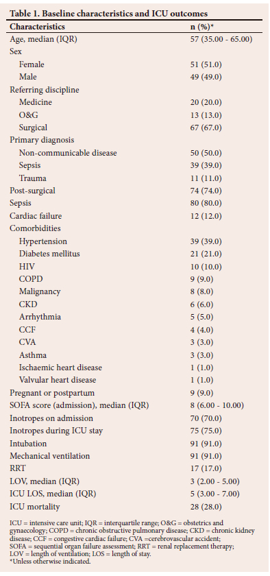 Data were collected from the patients' ICU charts using a Microsoft Excel spreadsheet (Microsoft Corp., USA) and subsequently analysed using SPSS version 28.0 (IBM Corp., USA). A total of 100 patients were included owing to the anticipated availability of hard copies of patient records. A p-value of <0.05 was taken as statistically significant.