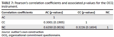 With regard to the validity of the questionnaire, Allen and Meyer (1990:6) subjected the 21 items comprising the three OC scales to a factor analysis. Clugston et al. (2000:13) found that there was validity in the Allen and Meyer (1990) measuring instrument. Wasti (2003:307) also performed a factor analysis with regard to the questionnaire in a Turkish context, which yielded a three-factor solution, supporting the validity of the instrument. This instrument is valid and reliable in the South African context (Manetje 2005; Louw & Boshoff 2006; Nyengane 2007; Van Stuyvesant-Meijen 2007; Pittorini 2008).