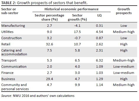 Table 2 illustrates the growth prospects on a sectoral level resulting from university expenditure.