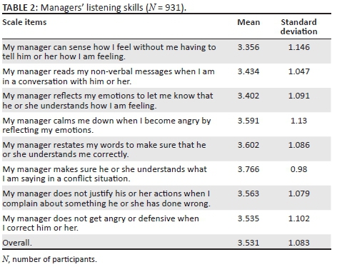 Listening can be referred to as the act of consciously paying attention to not only the message but also the manner in which the message is being conveyed, such as the use of language, voice, tone and body language of the speaker (Certo 2014; Pelham 2006:180). Effective managers are active listeners who are engaged and invested in the outcome of the interaction (De Janasz et al. 2009:128). To be truly effective listeners, managers are advised to be supportive and genuinely concerned about the feelings of their subordinates during the communication process through empathetic listening (Henrico & Visser 2012:185).