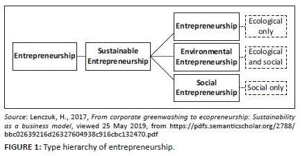 Despite ecopreneurship being related to sustainable-, social- and environmental- entrepreneurship, it is best not to confuse these notions as there are differences between them. In a study done by Lenczuk (2017), the following 'type hierarchy' was developed (as depicted in Figure 1), which displays the position of ecopreneurship in relation to sustainable-, environmental- and social- entrepreneurship.