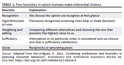 Mir-Artigues, P., 2021, 'Combining preferences and heuristics in analysing consumer behaviour', Evolutionary and Institutional Economics Review 19, 523-543. https://doi.org/10.1007/s40844-022-00234-8 [ Links ]