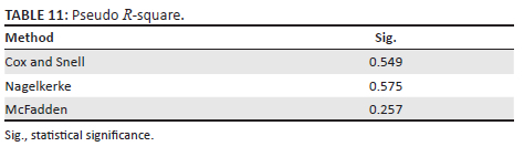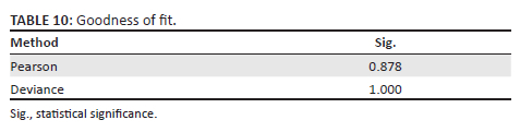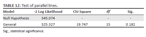 Cauchit link function is used because of the presence of extreme values. The model fitting is significant at 95% confidence. The goodness of fit suggests a good fit as shown in Table 10. R2 for the model amounts to 0.549 as shown in Table 11, and we fail to reject the null hypothesis that the location parameters are the same across response categories as shown in Table 12.
