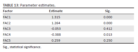 The parameter models are significant for Factors 1, 2 and 4. The model parameters are shown in Table 13. This shows that the proposed performance dimension is important for the customer satisfaction.