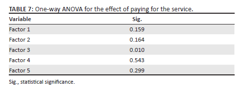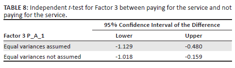 The second gap analysis is used to study the relationship between the effect of responsibility for paying for the service and the gap scores. As the test of homogeneity of variance is not significant, one-way ANOVA can be used. Table 7 shows that Factor 3 is significant at 95% confidence. The means for the two groups (those who are responsible for paying for the service and those who are just users and not responsible for paying for the service) are compared by conducting independent t-test at 95% confidence (as shown in Table 8.). It is observed that the perceptions of one of the assurance questions is significantly different between those who pay for the service and the others who do not pay for it. It can be concluded that Factor 3 (assurance and responsiveness) is significant and that, for the first assurance question, the perception of those responsible for paying the bill is less than those who are just users and not responsible for paying for the service themselves.