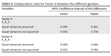 The third gap analysis is used to study the effect of gender on gap scores. The results show that at 95% confidence, there is no significant difference between the two genders in their gap scores. It is also noted that at 90% confidence, Factor 4 becomes mildly significantly different. The means for the two groups are compared by conducting independent t-tests at 90% confidence as shown in Table 9. It can be concluded that males have more expectations than females in two of the empathy questions.