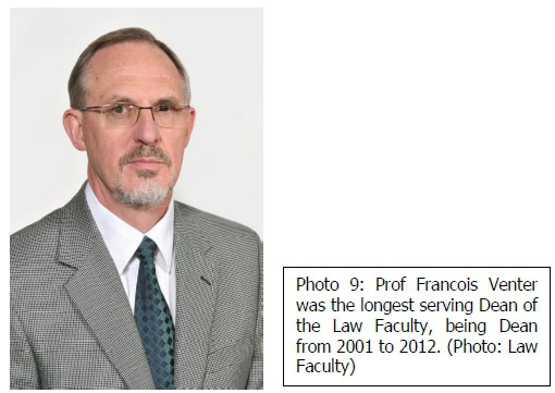 In 2004 the University of Leiden awarded the PU for CHE its prestigious Meijers Medal, honouring the PU for CHE for the relationship between the two faculties.10 During the tenure of Prof Francois Venter as Dean (2000 to 2012) more agreements with other universities were concluded.11