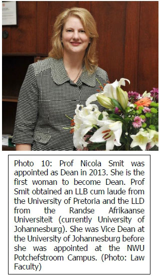 Today, fifty years later, the Law Faculty of the North-West University, Potchefstroom Campus, is a highly esteemed and vibrant law school. With 1 210 undergraduate students in 20153 the Faculty is still one of the smaller faculties in South Africa, but according to the Dean, Prof Nicola Smit,4 being smaller means that the staff personally know the students.5