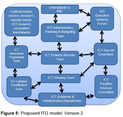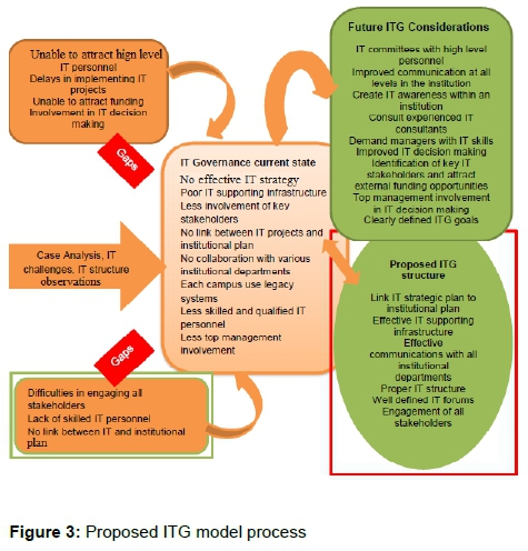 A generic idea for the proposed ITG model process is shown in Figure 3. It encompasses current IT structure at a representative low resource institution, findings from the other two case studies and future ICT changes.