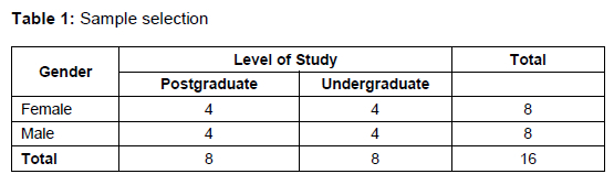 A case study design was implemented as the students that participated in the study belonged to a single institution of higher education in Malawi. The sample comprised 16 students who were identified using snowball sampling combined with purposive sampling. The former relies mainly on "networking and referrals" (Parker, Scott, and Geddes 2019, 4) but these referrals are based on predetermined criteria - the purposive element. For this study, the eligibility criteria were gender and level of study (postgraduate and undergraduate). Table 1 depicts the breakdown of respondents based on these criteria.