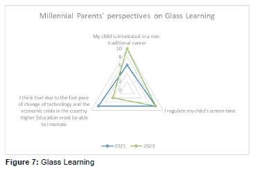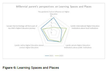 As per Figure 6, there was a positive shift in perspectives on higher education and the impact of the pandemic. Initially, millennial parents believed the pandemic would impact greatly on their child's higher education journey, but now they are less concerned about the effect the pandemic may prove to have had. Parents accept technology in higher education and the integration of the hybrid learning and teaching model. Respondents still prefer international and private education due to the perception of a higher level of academic standards.