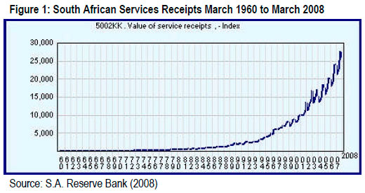 S.A. RESERVE BANK. 2008. 5002KK. Value of service receipts, - Index (MAR-1960 - MAR-2008). [Online] Available Url: http://www.thedti.gov.za/econdb/raportt/ra5002KK.html (Accessed 2 December, 2008). [ Links ]
