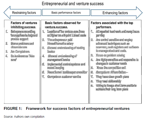 Therefore, the researchers found insufficient support for the proposition that the subjects could identify the contributing factors. However, interpretation of the subject responses identified three categories of factors as shown in Figure 1 were associated with the most successful ventures and entrepreneurs as well as for the least and medium performance ventures.