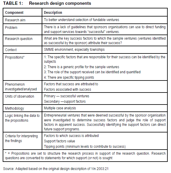 The research approach was explanatory and qualitative in nature. It explains the embedded experiences and opinions of several entrepreneurs that have been purposively identified by the support program sponsor as successful entrepreneurs and start-up ventures at a micro level rather than a macro level.