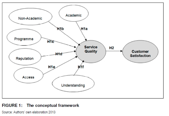 Although in the services literature, service quality has been widely researched, albeit primarily in a business context, the education sector has not been completely left, because education itself falls within the aegis of service industry. By citing Hill (1995), De Jager and Gbadamosi (2010:253) assert that service provision and customer satisfaction in the education sector rely on individual employee and student interfaces (encounters), which lead to a highly diverse service quality experience due to the extensive nature of the service work.