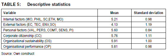 Descriptive statistical results are presented and briefly discussed in Table 5.