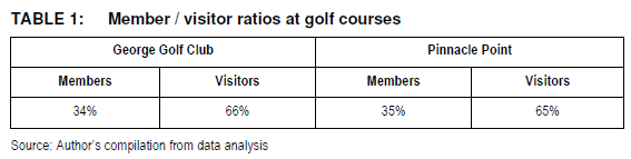 Table 1 indicates the member/visitor ratio of both George Golf Club and Pinnacle Point.