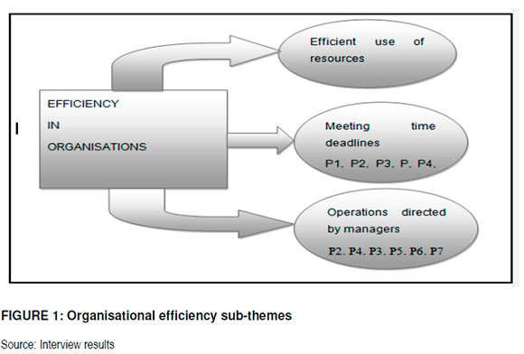 It has emerged from the data that general managers view themselves as drivers of organisational efficiencies. Under this theme emerged some sub-themes as highlighted in Figure 1.