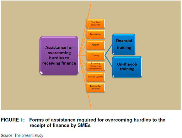 The following themes emerged from the interviews with the financial specialists from three banks in the Ethekwini Metro - concerning overcoming hurdles to receiving finance by SMEs. The main findings are illustrated in figure 1. Poor basic education, mentoring, passion, training, screening prospective entrepreneurs, the scoring system, and backing for collateral were all factors hindering the receipt of finance.