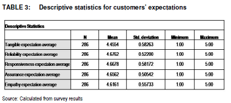 The results on medical insurance customers' expectations pertaining to service quality are shown in Table 3.